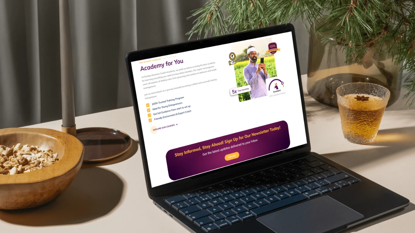 Donkey Business Coach, also known as Burrow Works, is an online academy created to help people learn how to set up and grow donkey farms. We incubated the brand by building the complete digital foundation, including a full website with an integrated learning platform, automated learner access and email journeys, payment integration, and a mascot-led brand identity.